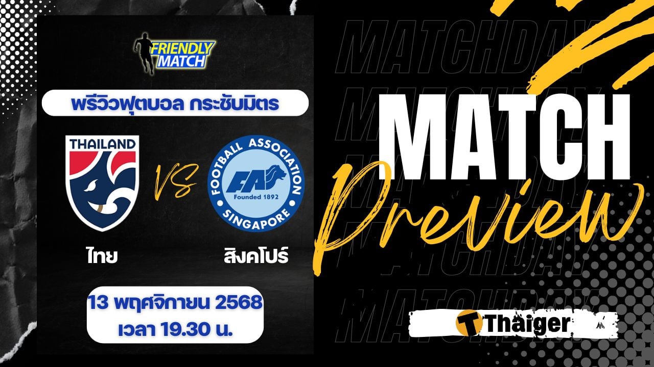ไทย พบ สิงคโปร์ ดูบอลสด ฟุตบอลกระชับมิตร วันที่ 13 พ.ย. 68