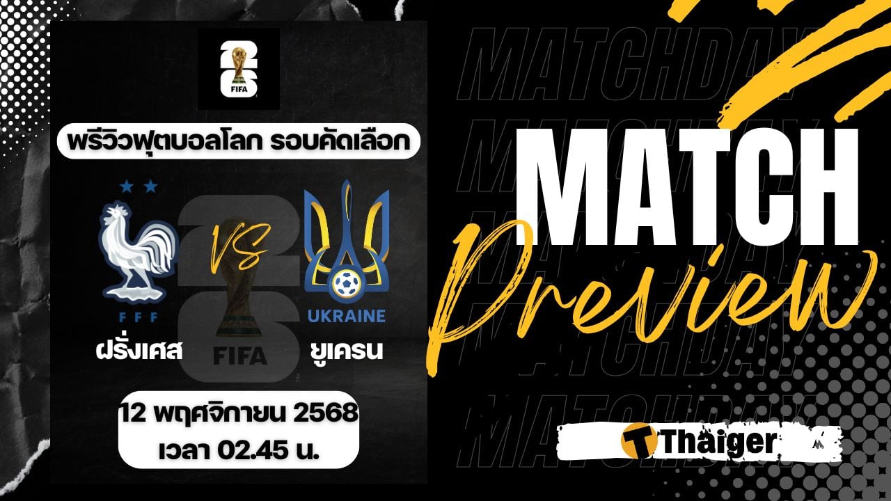 13 พฤศจิกายน 2568 เวลา 02.45 น. ถ่ายทอดสด ดูบอลสด ฟุตบอลโลก 2026 รอบคัดเลือก โซนยุโรป คู่ระหว่าง ฝรั่งเศส พบ ยูเครน The Thaiger พาไปวิเคราะห์เกม พร้อมการทำนายผล และคาดการณ์ 11 ตัวจริงได้ที่นี่