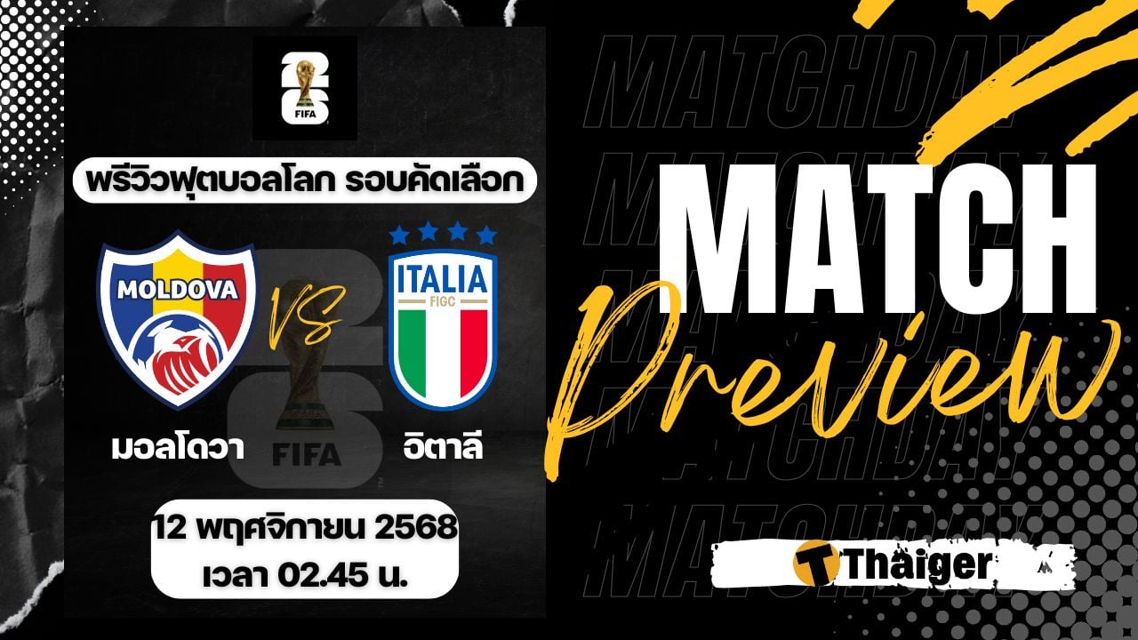 13 พฤศจิกายน 2568 เวลา 02.45 น. ถ่ายทอดสด ดูบอลสด ฟุตบอลโลก 2026 รอบคัดเลือก โซนยุโรป คู่ระหว่าง มอลโดวา พบ อิตาลี The Thaiger พาไปวิเคราะห์เกม พร้อมการทำนายผล และคาดการณ์ 11 ตัวจริงได้ที่นี่