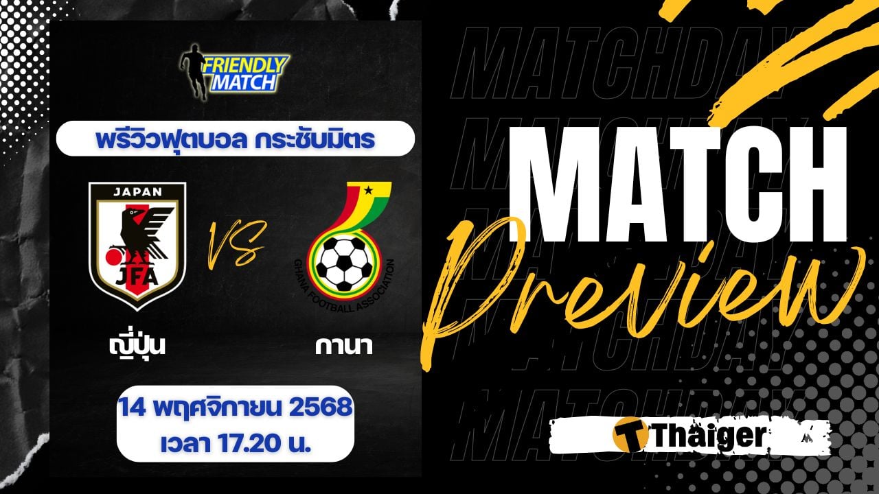 14 พฤศจิกายน 2568 เวลา 17.20 น. ถ่ายทอดสด ดูบอลสด ฟุตบอลกระชับมิตร คู่ระหว่าง ญี่ปุ่น พบ กานา The Thaiger พาไปวิเคราะห์เกม พร้อมการทำนายผล และคาดการณ์ 11 ตัวจริงได้ที่นี่