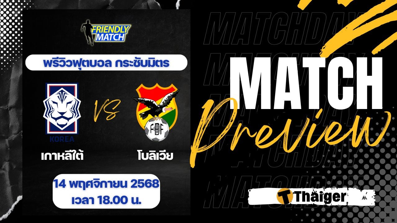 14 พฤศจิกายน 2568 เวลา 18.00 น. ถ่ายทอดสด ดูบอลสด ฟุตบอลกระชับมิตร คู่ระหว่าง เกาหลีใต้ พบ โบลิเวีย The Thaiger พาไปวิเคราะห์เกม พร้อมการทำนายผล และคาดการณ์ 11 ตัวจริงได้ที่นี่