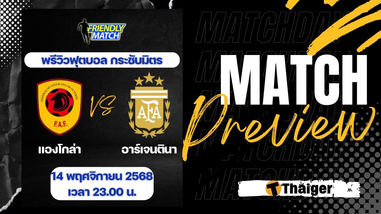 14 พฤศจิกายน 2568 เวลา 23.00 น. ถ่ายทอดสด ดูบอลสด ฟุตบอลกระชับมิตร คู่ระหว่าง แองโกล่า พบ อาร์เจนตินา The Thaiger พาไปวิเคราะห์เกม พร้อมการทำนายผล และคาดการณ์ 11 ตัวจริงได้ที่นี่