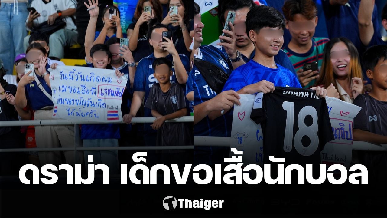 แฟนบอลรุ่นจิ๋วของทีมชาติไทย ชูป้ายขอเสื้อแข่งของ ชนาธิป ในเกมอุ่นเครื่องกับ สิงคโปร์ แต่เจอดราม่า ใช้เหตุส่วนตัวขอของมีค่านักเตะ