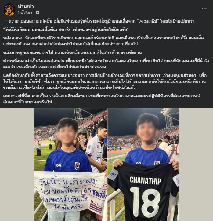 “ด้านหนึ่งมองว่าเป็นโมเมนต์อบอุ่น เด็กคนหนึ่งได้ของขวัญจากไอดอลในแบบที่เขาฝันไว้ ขณะที่นักเตะเองก็มีน้ำใจตอบรับเช่นเดียวกับเหตุการณ์ที่พบได้บ่อยในต่างประเทศ”