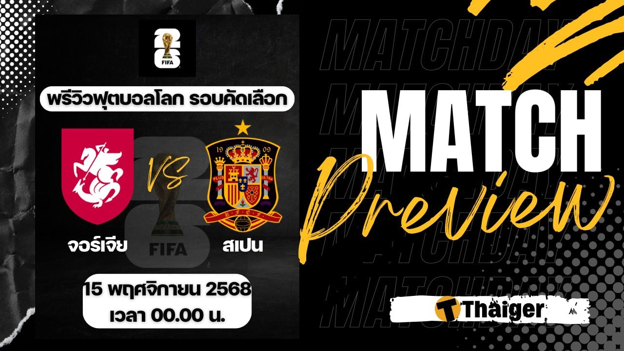 15 พฤศจิกายน 2568 เวลา 00.00 น. ถ่ายทอดสด ดูบอลสด ฟุตบอลโลก 2026 รอบคัดเลือก โซนยุโรป คู่ระหว่าง จอร์เจีย พบ สเปน The Thaiger พาไปวิเคราะห์เกม พร้อมการทำนายผล และคาดการณ์ 11 ตัวจริงได้ที่นี่