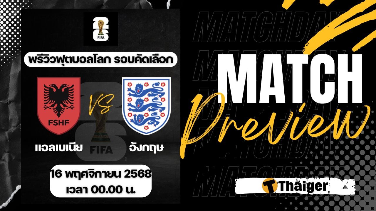 16 พฤศจิกายน 2568 เวลา 00.00 น. ถ่ายทอดสด ดูบอลสด ฟุตบอลโลก 2026 รอบคัดเลือก โซนยุโรป คู่ระหว่าง แอลเบเนีย พบ อังกฤษ The Thaiger พาไปวิเคราะห์เกม พร้อมการทำนายผล และคาดการณ์ 11 ตัวจริงได้ที่นี่