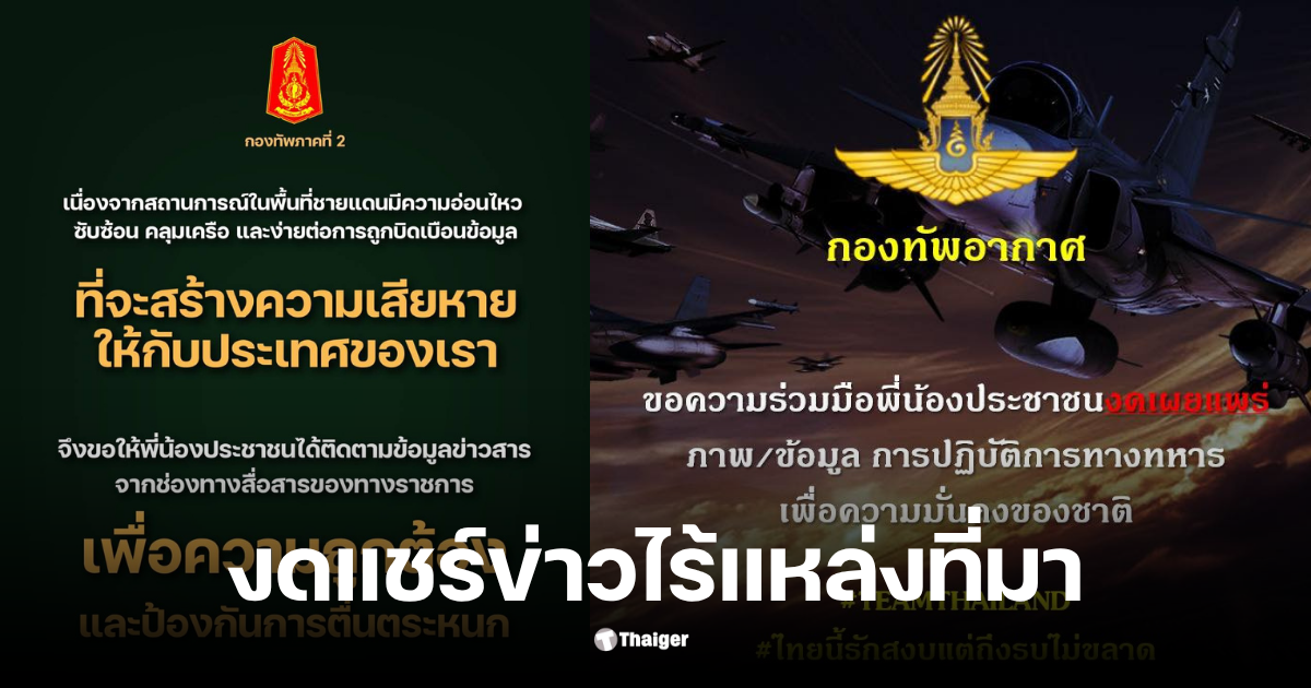 ทภ.2-ทัพฟ้า ย้ำประชาชนชายแดนอ่อนไหว-ขอ “งดแชร์ข่าวไร้แหล่งที่มา”