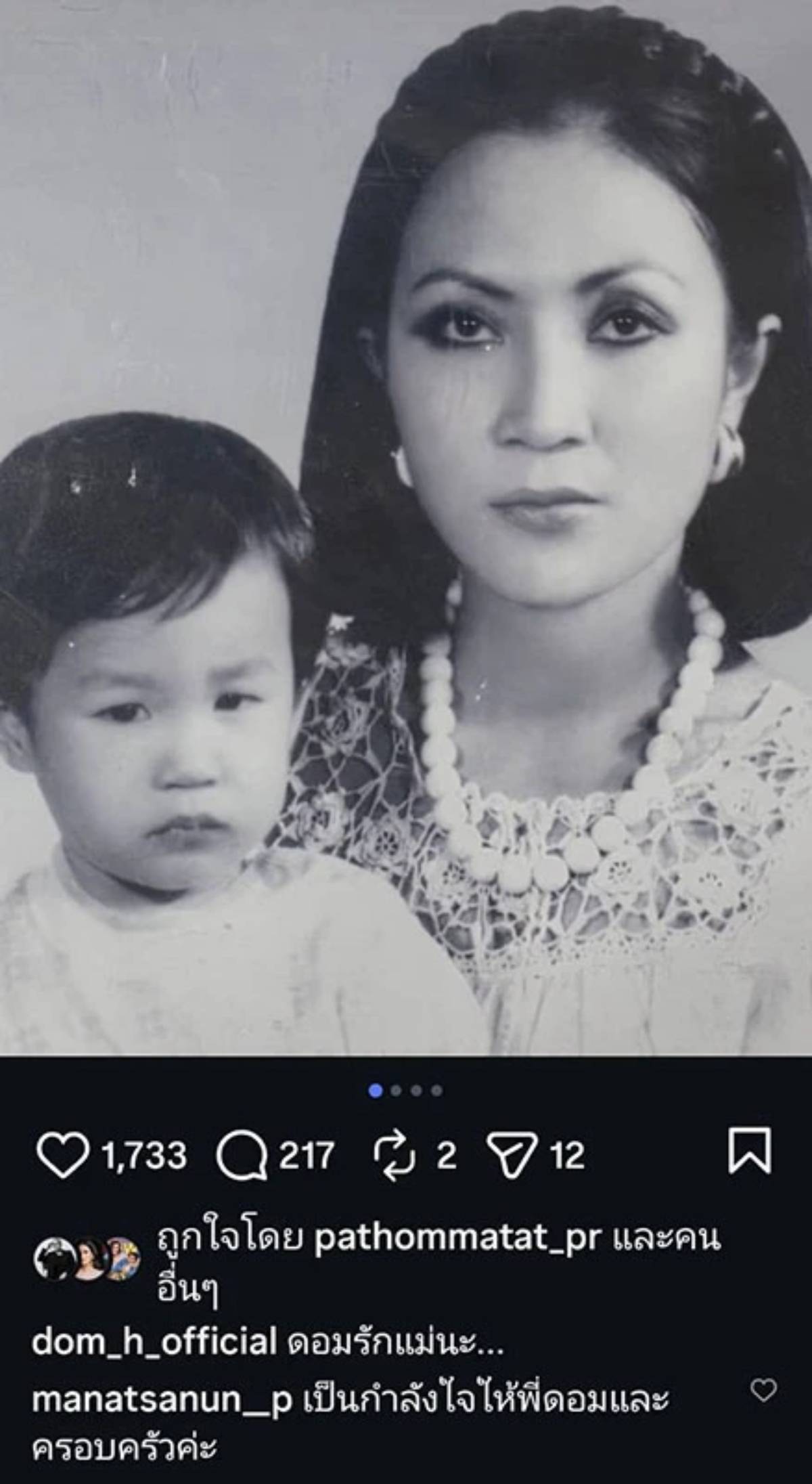 คนบันเทิงพากันโศกเศร้า หลัง “ดอม เหตระกูล” ดาราชายชื่อดังสูญเสีย แม่แป๊บ ปรียาพร เหตระกูล แห่งอาณาจักรเดลินิวส์ จากกันนิรันดร์พร้อมทิ้งแคปชั่นสุดอาลัย