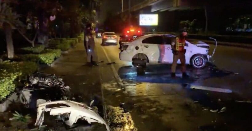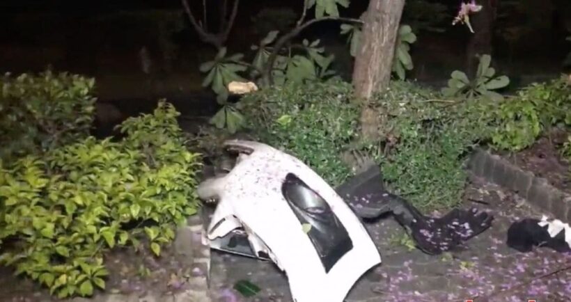 อุบัติเหตุรถยนต์เก๋งพุ่งชนต้นไม้ริมถนน บริเวณก่อนขึ้นสะพานข้ามถนนลาดพร้าว แขวงและเขตลาดพร้าว กทม. เมื่อเวลา 04.00 น. คืนวันที่ 28 มี.ค.ที่ผ่านมา