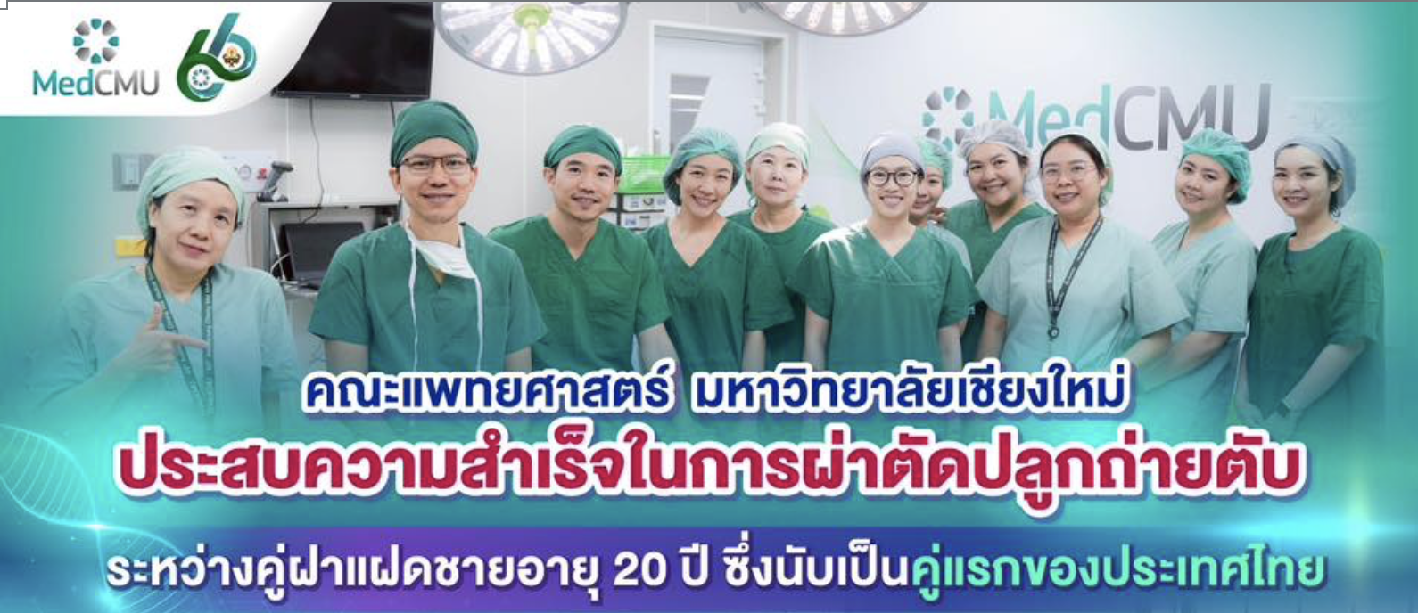 ถือเป็นข่าวดี ความก้าวหน้าครั้งสำคัญของวงการแพทย์ไทย เมื่อคณะแพทยศาสตร์ มหาวิทยาลัยเชียงใหม่ ประสบความสำเร็จในการผ่าตัดปลูกถ่ายตับระหว่าง “คู่แฝดเหมือน” ได้เป็นคู่แรกของประเทศไทย เป็นการผ่าตัดเพื่อรักษาผู้ป่วยโรคตับเรื้อรังด้วยการใช้อวัยวะจากคู่แฝดที่มีพันธุกรรมตรงกันทุกประการ