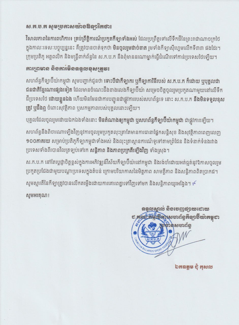 อ้างอิง : Facebook Cambodia Billiard Sports Federation