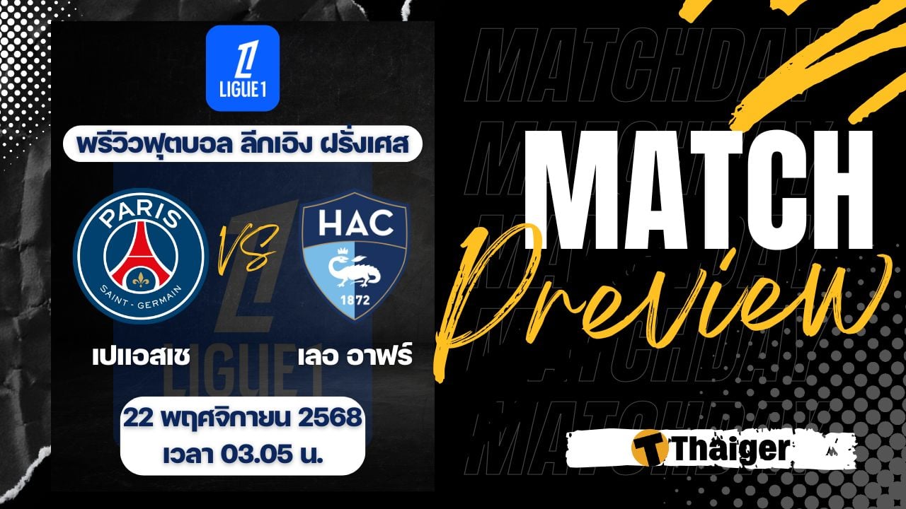 22 พฤศจิกายน 2568 เวลา 03.05 น. ถ่ายทอดสด ดูบอลสด ฟุตบอล ลีกเอิง ฝรั่งเศส ฤดูกาล 2025/26 ที่สนาม พาร์ค เดส์ แพร็งซ์ เปแอสเช พบ เลอ อาฟร์ The Thaiger พาไปวิเคราะห์เกม พร้อมการทำนายผล และคาดการณ์ 11 ตัวจริงได้ที่นี่