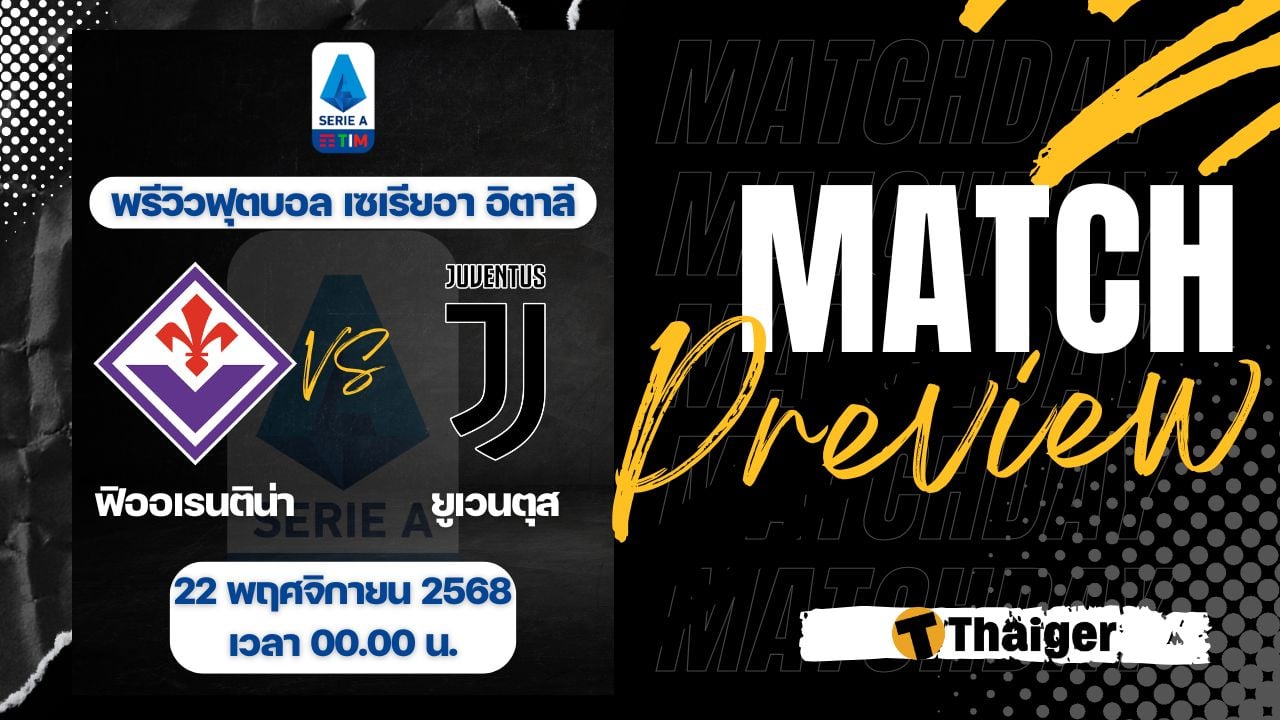 22 พฤศจิกายน 2568 เวลา 00.00 น. ถ่ายทอดสด ดูบอลสด ฟุตบอล กัลโช่ เซเรียอา อิตาลี ฤดูกาล 2025/26 ที่สนาม อาร์เตมิโอ ฟรันชี่ ฟิออเรนตินา พบ ยูเวนตุส The Thaiger พาไปวิเคราะห์เกม พร้อมการทำนายผล และคาดการณ์ 11 ตัวจริงได้ที่นี่