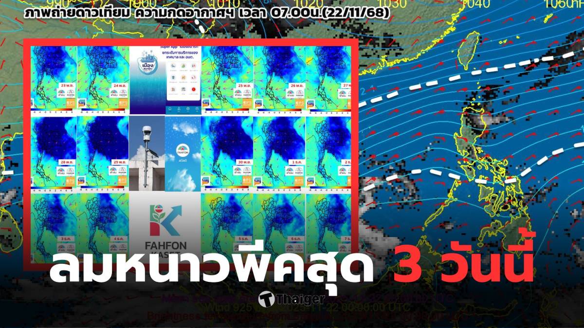 วันที่ 22 พฤศจิกายน 68 เฟซบุ๊กแฟนเพจ “พยากรณ์อากาศประเทศไทย” อัปเดตสภาพอากาศในช่วง 7 วันข้างหน้า โดยระบุ “โปรลมหนาว ต่อเนื่อง ! พีคสุดสัปดาห์หน้า 28-30 พ.ย. กรุงเทพฯ 18-19 องศา ! เล็งบริเวณสีน้ำเงิน น้ำเงินเข้ม !”