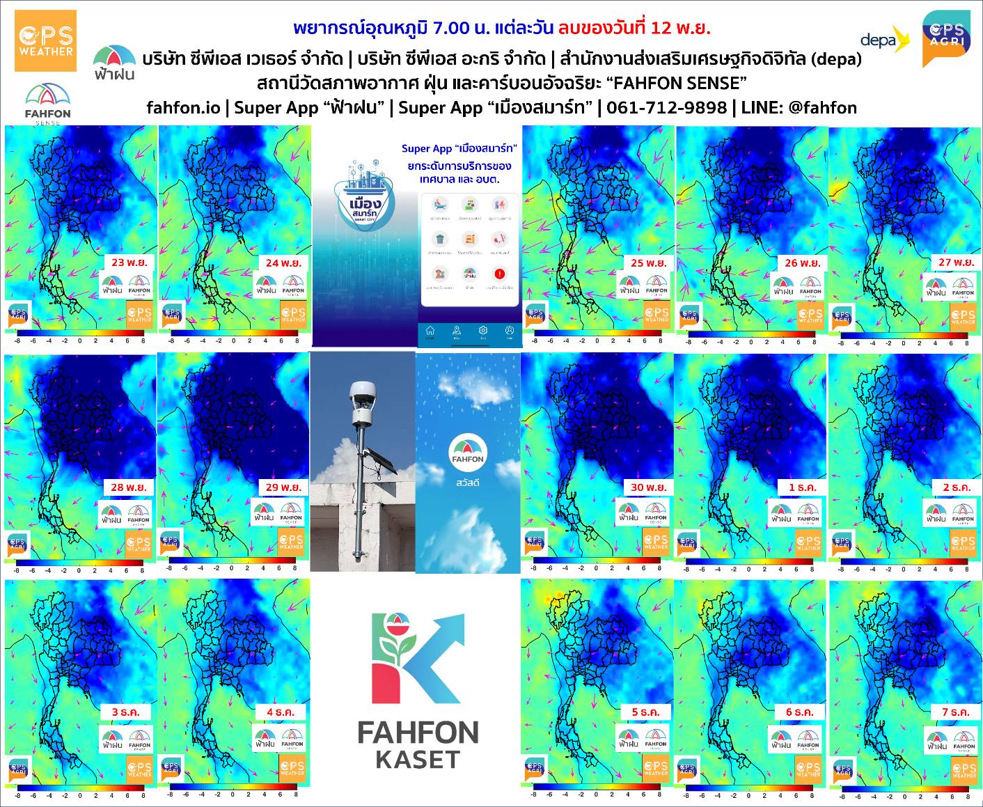 รูปนี้แสดงพยากรณ์อุณหภูมิเวลา 7.00 น. ของแต่ละวัน ลบด้วยของวันที่ 12 พ.ย.