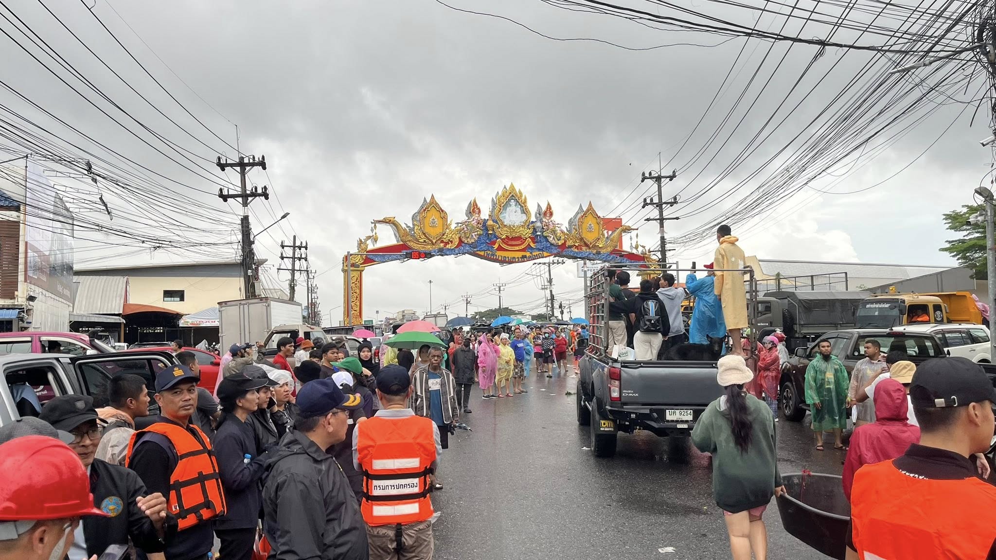 สำหรับบรรยากาศพี่น้องประชาชนในพื้นที่โดยรอบ 4 แยกโรงปูน เทศบาลนครหาดใหญ่ อพยพขึ้นมาอยู่ในที่สูง บริเวณพื้นผิวถนน ซึ่งตอนนี้ได้ปิดการสัญจรไปเป็นที่เรียบร้อยแล้ว โดยจุดนี้เป็นจุดที่นายอนุทิน ชาญวีรกูล นายกรัฐมนตรี ลงพื้นที่มาเพื่อติดตามสถานการณ์น้ำ และให้ความช่วยเหลือประชาชนที่ได้รับผลกระทบจากน้ำท่วมในพื้นที่ อำเภอหาดใหญ่ จังหวัดสงขลา