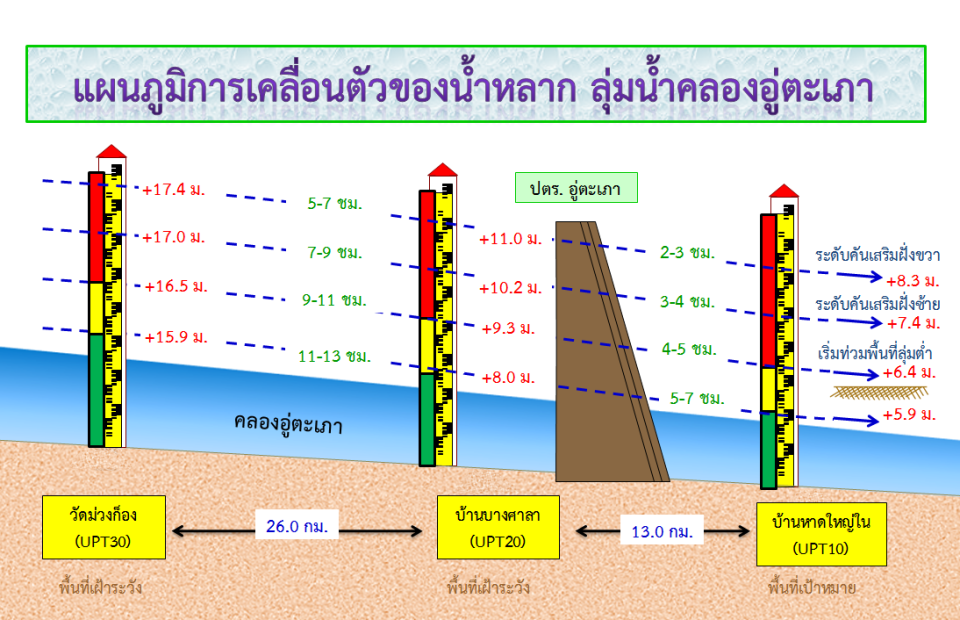 - ระดับน้ำในคลองอู่ตะเภา ล้นตลิ่ง และลดลงอย่างต่อเนื่อง