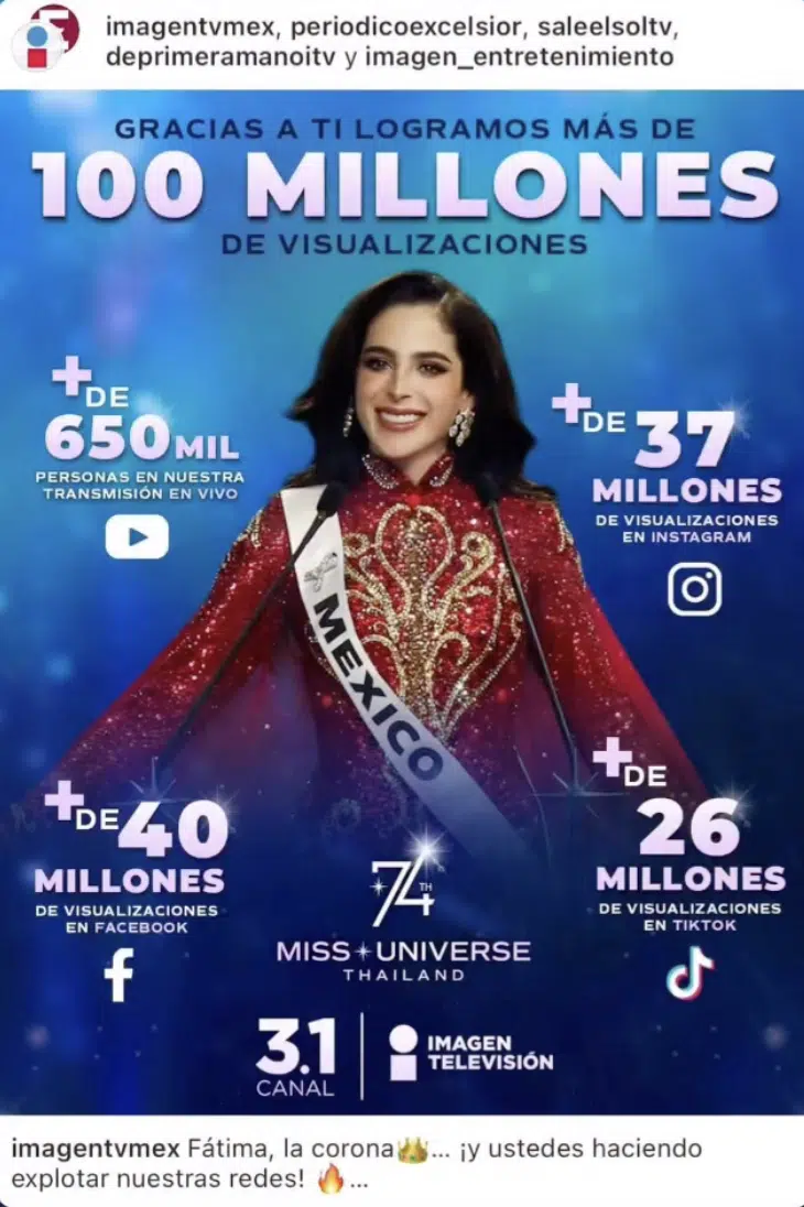 CEO เวทีนางงามอันดับ 1 อ้างว่า สื่อบางสำนักนำเสนอข้อมูลที่ทำให้เข้าใจว่า การที่ ฟาติมา นางงามเม็กซิโกชนะการประกวดมีส่วนเกี่ยวข้องกับผลประโยชน์ทางธุรกิจ ระหว่างบริษัทของราอูลกับบริษัทน้ำมันแห่งชาติเม็กซิโก (Pemex)