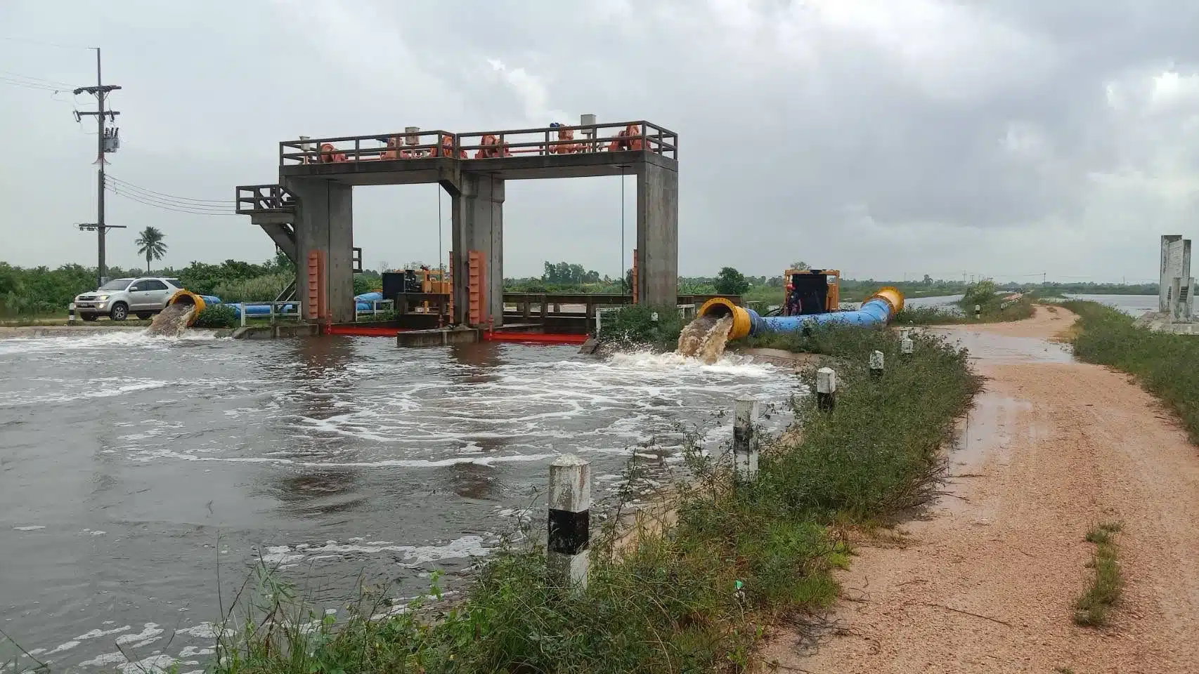 ปัตตานี เกิดน้ำท่วมใน 4 อำเภอ ได้แก่ เมืองปัตตานี ยะรัง มายอ และโคกโพธิ์ โครงการส่งน้ำและบำรุงรักษาปัตตานี สำนักงานชลประทานที่ 17 ได้เดินเครื่องสูบน้ำด้วยไฟฟ้าที่สถานีสูบน้ำ D (บ้านเขาตูม) ต.เขาตูม อ.ยะรัง จ.ปัตตานี เพื่อเร่งระบายน้ำออกจากในพื้นที่