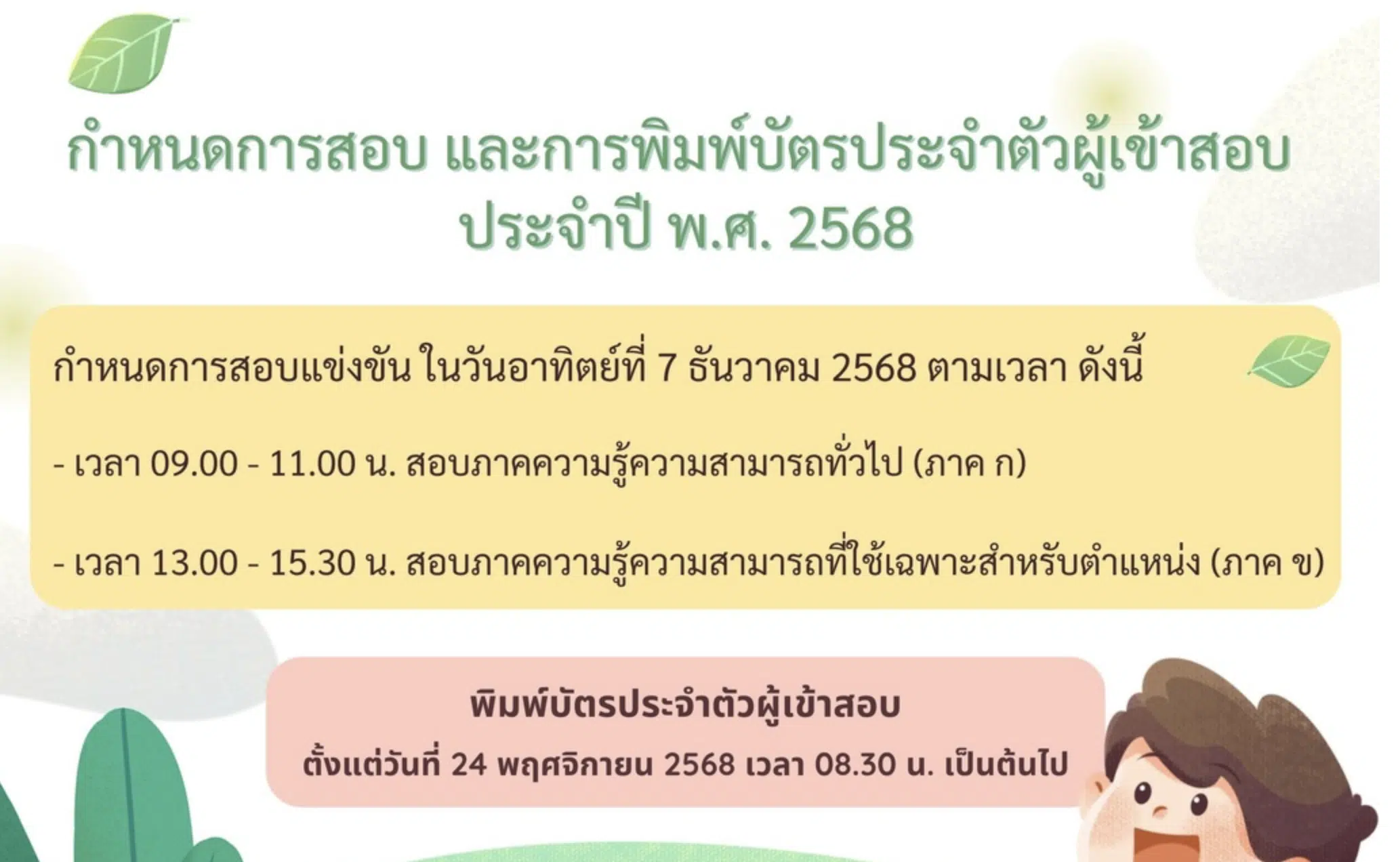 - สอบภาค ก. วันที่ 7 ธันวาคม 2568 (9.00 น.-11.00 น.)