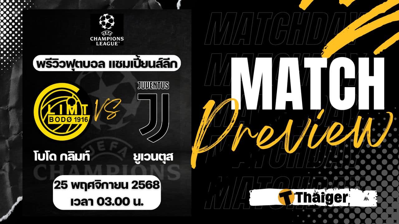 25 พฤศจิกายน 68 ดูบอลสด ฟุตบอล ยูฟ่า แชมเปี้ยนส์ ลีก รอบลีกเฟส นัดที่ 5 ระหว่าง โบโด กลิมท์ พบ ยูเวนตุส ที่สนาม อัสพ์ไมร่า สตาดิโอน เวลา 03:00 น. ตามเวลาประเทศไทย พร้อมถ่ายทอดสด