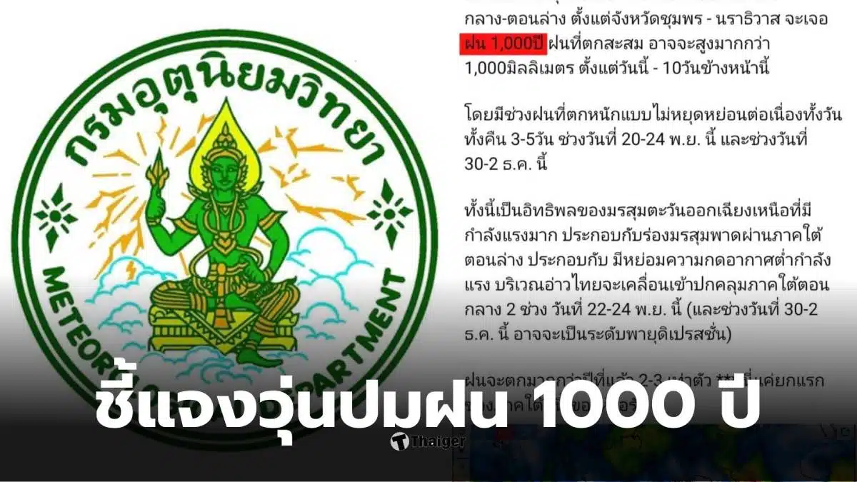 กรมอุตุฯ แจงดราม่า “มหาอุทกภัย-ฝน 1000 ปี” ไม่ได้ตีเป็นเฟกนิวส์