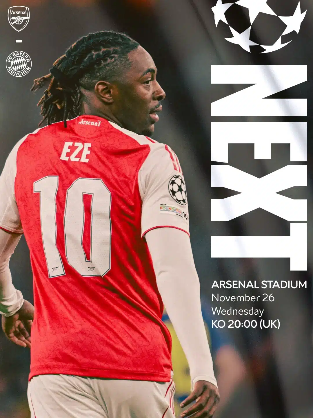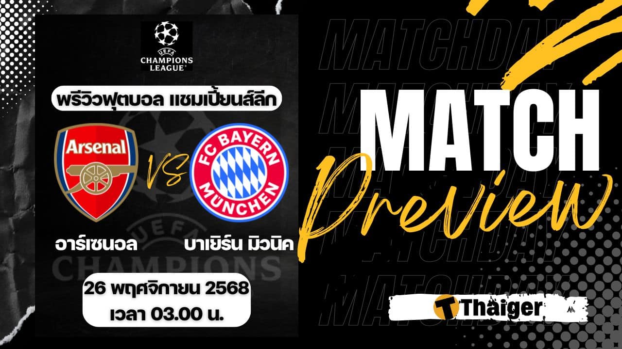 26 พฤศจิกายน 68 ดูบอลสด ฟุตบอล ยูฟ่า แชมเปี้ยนส์ ลีก รอบลีกเฟส นัดที่ 5 ระหว่าง อาร์เซนอล พบ บาเยิร์น มิวนิค ที่สนาม เอมิเรตส์ สเตเดี้ยม เวลา 03:00 น. ตามเวลาประเทศไทย พร้อมถ่ายทอดสด