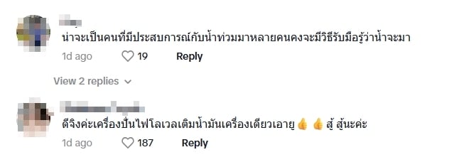 พร้อมแคปชั่นระบุว่า “บ้านหลังเดียวที่น้ำไม่ท่วม ในอำเภอหาดใหญ่” จากนั้นผู้ใช้บัญชีชื่อ กล้าหาญ เข้ามาคอมเมนต์ว่า “บ้านเราเองค่ะ เหนื่อยๆมาก ๆ ใช้เวลาทำไม่ถึงชั่วโมง ทำแข่งกับน้ำ น้ำก็มา เราก็ทำ”