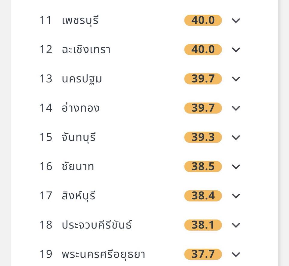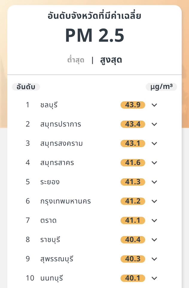 ต่อมารายงานค่าฝุ่น PM 2.5 เมื่อเวลา 12.00 น.ที่ผ่านมา ปรากฏว่าเกินค่ามาตรฐานระดับสีส้ม 50 เขต ในขณะที่ทั่วประเทศพบระดับสีส้ม 19 จังหวัด