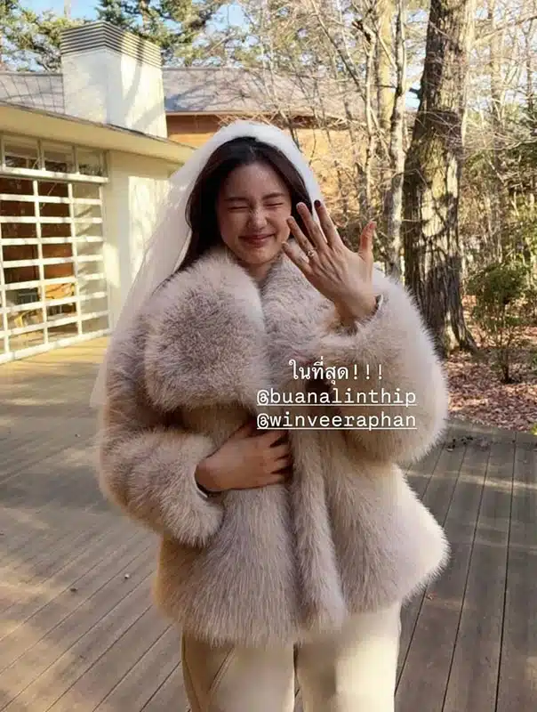 โมเมนต์อบอุ่น ‘บัว นลินทิพย์’ ถูกแฟนหนุ่ม ‘วิน วีระพันธ์’ คุกเข่าขอแต่งงานที่ญี่ปุ่น ท่ามกลางบรรยากาศโรแมนติก สวมแหวนเพชรเตรียมเป็นเจ้าสาว แฟนคลับและเพื่อนดาราแห่ยินดี