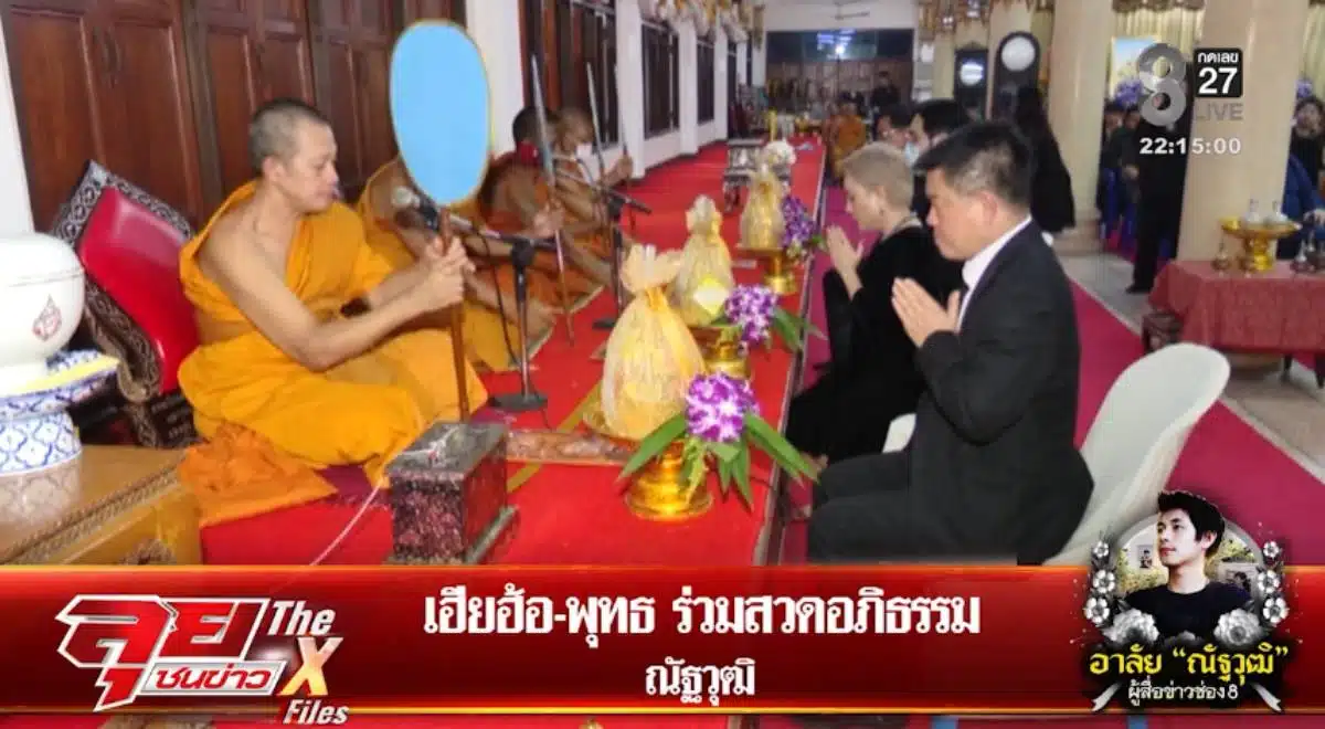 เวลา 19.00 น. มีพิธีสวดพระอภิธรรม นำโดย เฮียฮ้อ สุรชัย เชษฐโชติศักดิ์ ประธานเจ้าหน้าที่บริหาร บริษัทอาร์เอส จำกัด พร้อมด้วย เหน่ง-นงลักษณ์ งามโรจน์ ประธานเจ้าหน้าที่บริหารของช่อง 8 รวมทั้ง พุทธ อภิวรรรณ องค์พระยารมี ผู้อำนวยการใหญ่ฝ่ายข่าวและผู้ประกาศข่าว “โจ” ธีระ ธัญญอนันต์ผล บรรรณาธิการฝ่ายงานข่าว และตัวแทนพนักงานช่องแปด