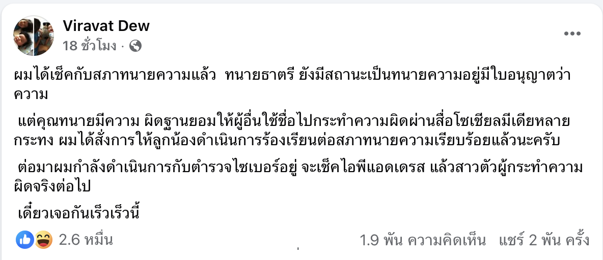 ดิว – วีรวัฒน์ วลัยเสถียร โด่งดังแวดวงการลงทุนและธุรกิจไทย ไม่ใช่เพียงเพราะนามสกุลดังที่หลายคนคุ้นหู แต่เป็นเพราะความสำเร็จระดับ “พันล้าน” ที่เขาสร้างขึ้นมาด้วยสมอง 2 มือของตนเอง ล่าสุดมีดราม่ารสแซ่บกับการเพจวอร์กับเพจเฟซบุ๊ก สำนักกฎหมายธนธรรม ทนายธาตรี ธนธรรมสุนทร เฟซจริง