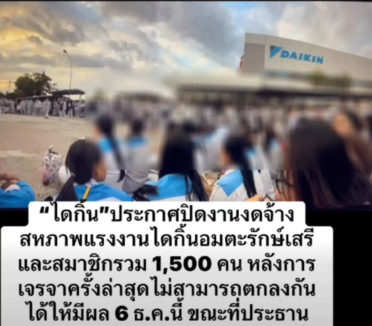 กำลังเป็นที่กระแสวิพากษ์วิจารณ์อย่างหนัก หลังจากที่ บริษัท ไดกิ้น อินดัสทรีส์ (ประเทศไทย) จำกัด ผู้ผลิตเครื่องปรับอากาศรายใหญ่ ออกหนังสือแจ้ง “ปิดงานงดจ้าง” กับสหภาพแรงงานไดกิ้นอมตะนครศรีและสมาชิกสหภาพฯ ที่เกี่ยวข้อง โดยมีผลตั้งแต่เวลา 08.00 น.ของวันที่ 6 ธันวาคม 2568 เป็นต้นไป