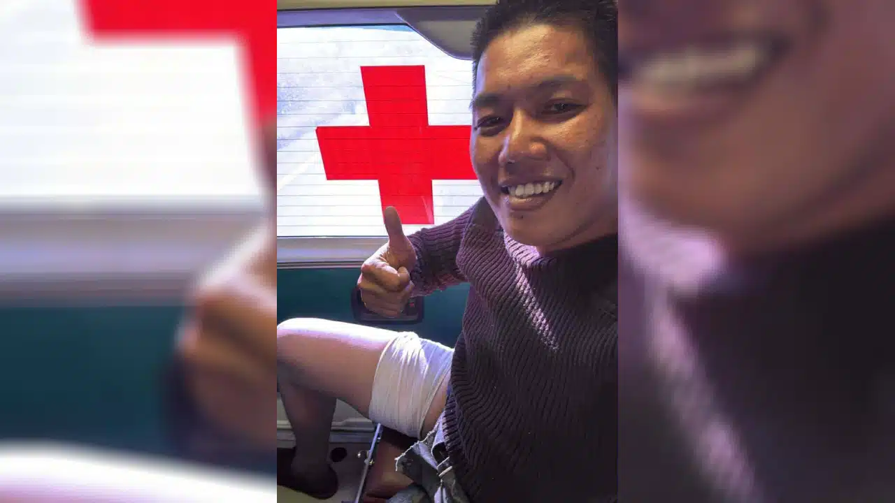 กองทัพภาค 2 เปิดภาพ นายทหารถูกยิงเจ็บ หลังปะทะเขมร พื้นที่ภูผาเหล็ก จ.ศรีสะเกษ ชูนิ้วโป้ง ปลอดภัยแล้ว ได้รับบาดเจ็บที่ขา