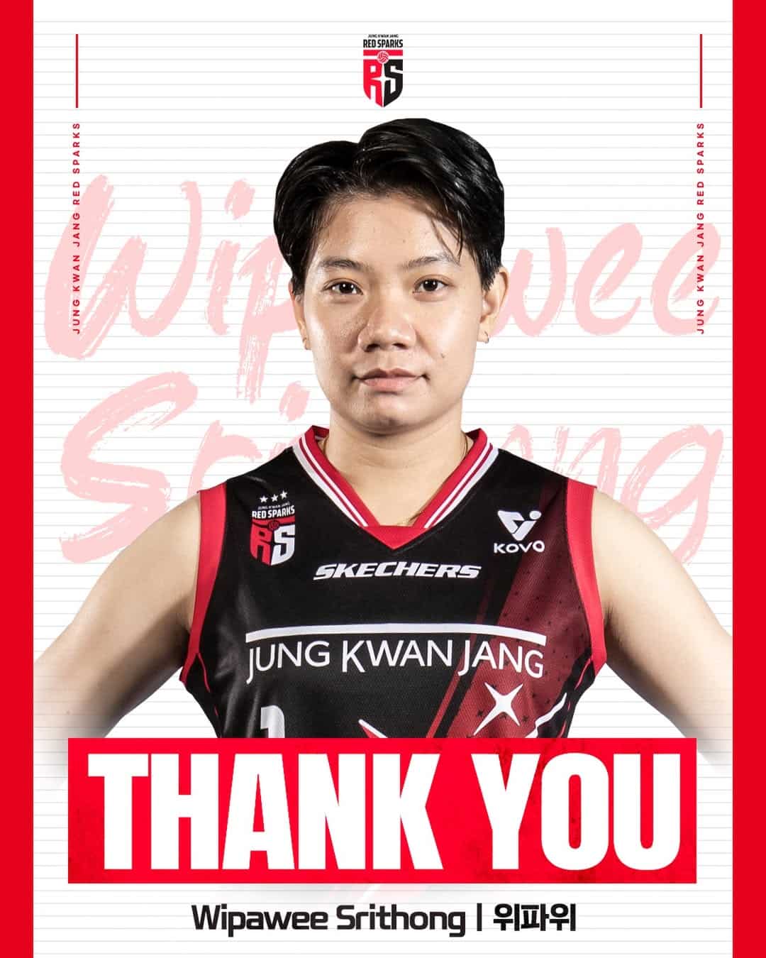 สโมสรวอลเลย์บอลหญิง จองกวานจาง เรด สปาร์คส์ ยกเลิกสัญญา “มด” วิภาวี ศรีทอง มือตบชาวไทย ก่อนเซ็นสัญญากับ อิคูชิ ดาวรุ่งมองโกเลีย เสียบแทนโควตาเอเชีย