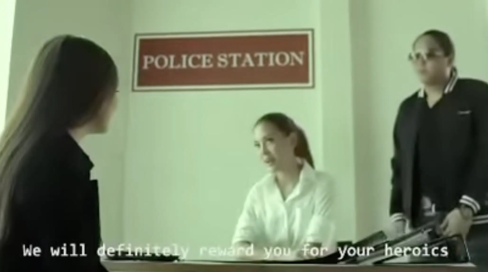 เนื้อหาในหนังจำลองสถานการณ์ให้ “เวย์” รับบทโจรบุกปล้นธนาคารและจับนานาที่มาถอนเงินเป็นตัวประกัน โดยมี เจนี่ รับบทเป็นตำรวจหญิงที่ตามมาไล่ล่าจับกุม จุดหักมุมของเรื่องเกิดขึ้นเมื่อ นานา แย่งปืนมายิง เวย์ จนล้มลง ทำให้ เจนี่ และทีมตำรวจชื่นชมในความกล้าหาญและเตรียมมอบโล่รางวัลให้