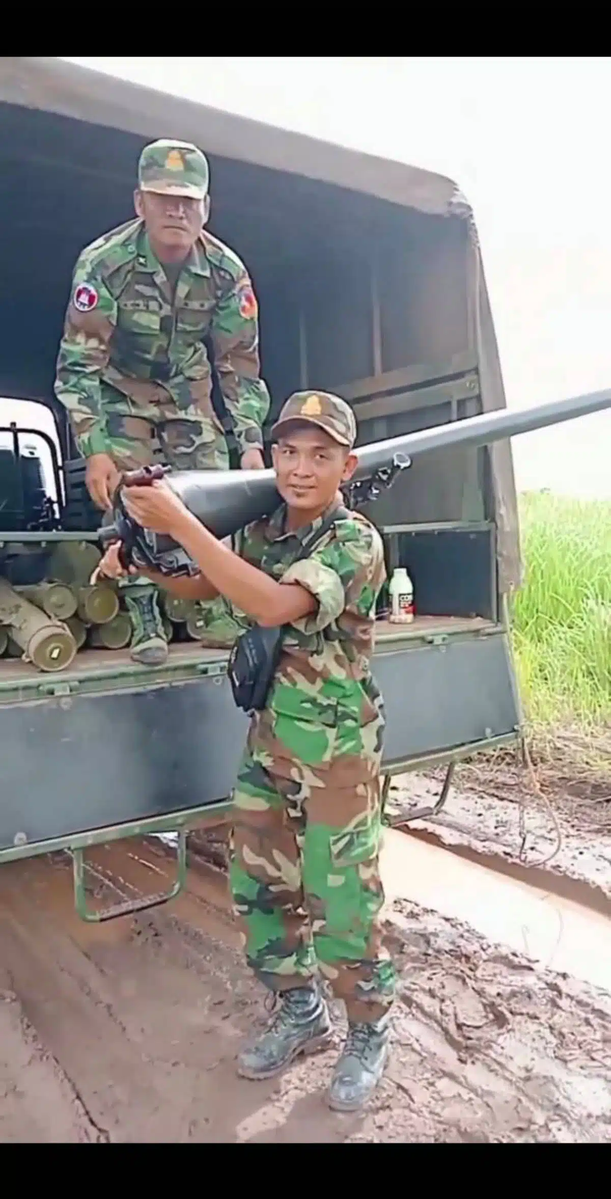 เมื่อสำรวจบนเพจดังกล่าว ยังมีการเปิดเผยคลิปวิดีโอของทหารเขมรอีกราย โพสต์รูปพร้อมระบุ “เสียงปืนใหญ่ทหารเสียม ดังน่ากลัว”