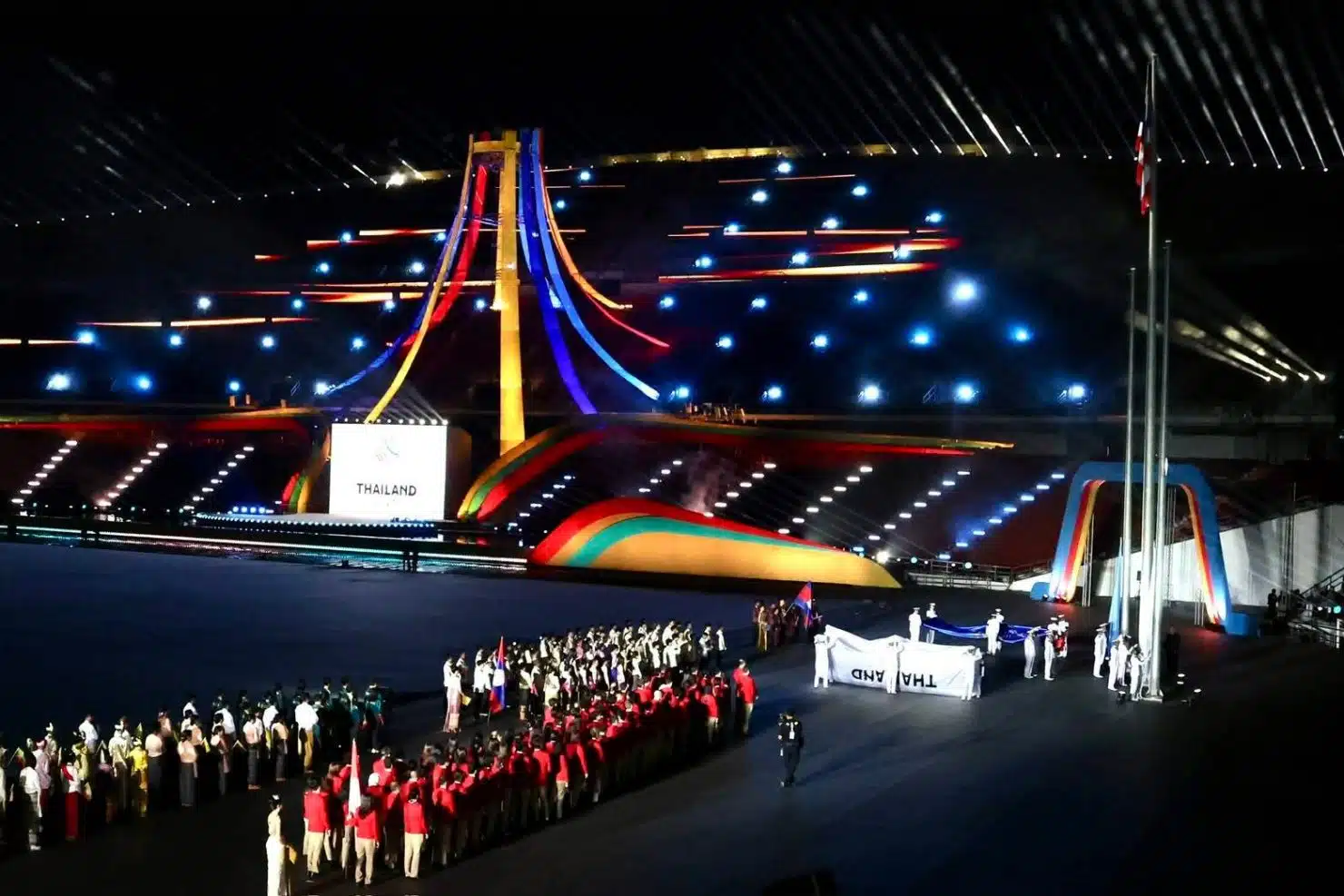 ทีมงานเนรมิตราชมังคลากีฬาสถานให้กลายเป็นเวทีแห่งแสงสีเสียงสุดตระการตา เพื่อต้อนรับทัพนักกีฬาจาก 11 ชาติอาเซียน โดยพิธีการเริ่มขึ้นด้วยการแสดงที่ผสมผสานความเป็นไทยเข้ากับเทคโนโลยีสมัยใหม่ สื่อถึงความยิ่งใหญ่และความเป็นหนึ่งเดียวของภูมิภาค
