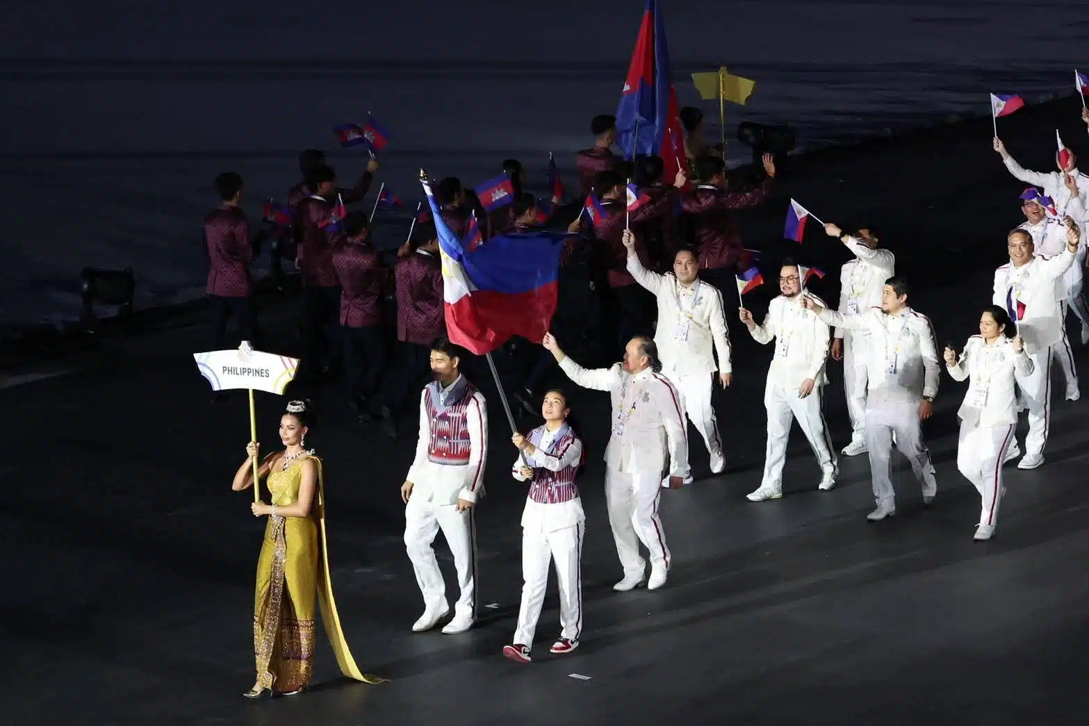 จากนั้นช่วงเวลาสำคัญของพิธี คือขบวนพาเหรดทัพนักกีฬาจาก 11 ชาติ สมเด็จพระนางเจ้าฯ พระบรมราชินี ทรงสร้างประวัติศาสตร์ด้วยการทรงพระดำเนินร่วมในขบวนนักกีฬาทีมชาติไทย ในฐานะที่พระองค์ทรงเข้าร่วมการแข่งขันกีฬาเรือใบในซีเกมส์ครั้งนี้