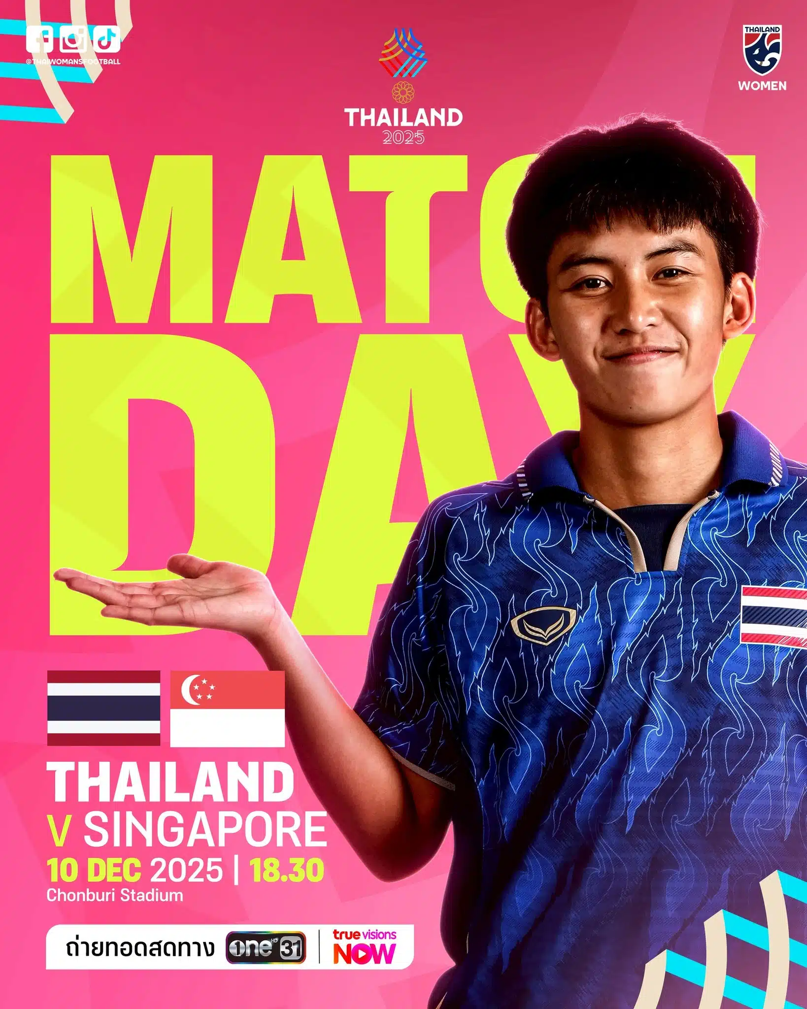 ถ่ายทอดสด ฟุตบอลหญิง ซีเกมส์ 2025 คู่ระหว่าง ไทย พบ สิงคโปร์ แข่ง 18.30 น. ช่องถ่ายทอดสด ดูได้ทาง ช่อง One 31