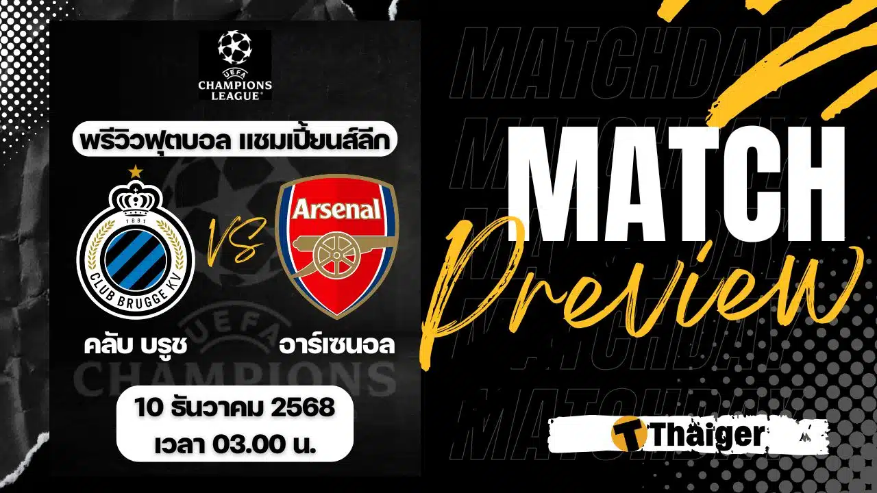 Thaiger ทายผลบอล คลับ บรูช 0-2 อาร์เซนอล