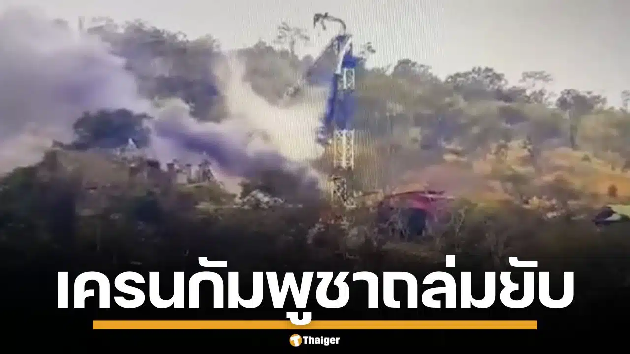 ทาวเวอร์เครน กัมพูชา ถล่มยับ หลังใช้พื้นที่รอบปราสาท ทำฐานปฏิบัติการ
