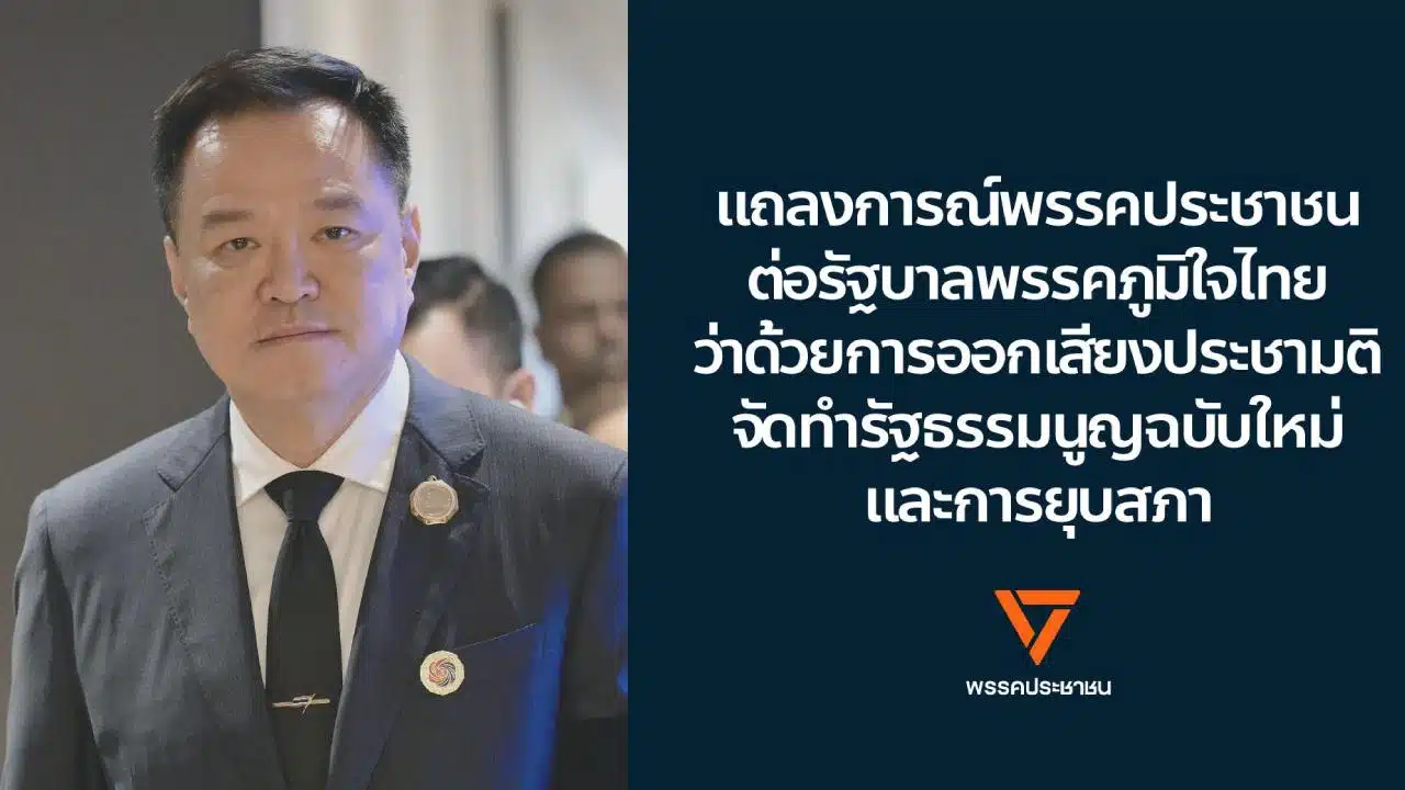 พรรคประชาชน ได้โพสต์ข้อความเฟซบุ๊ก ภายหลังนาย อนุทิน ชาญวีรกูล นายกรัฐมนตรี ยื่นยุบสภา ว่า “แถลงการณ์พรรคประชาชนต่อรัฐบาลพรรคภูมิใจไทยว่าด้วยการออกเสียงประชามติจัดทำรัฐธรรมนูญฉบับใหม่และการยุบสภา