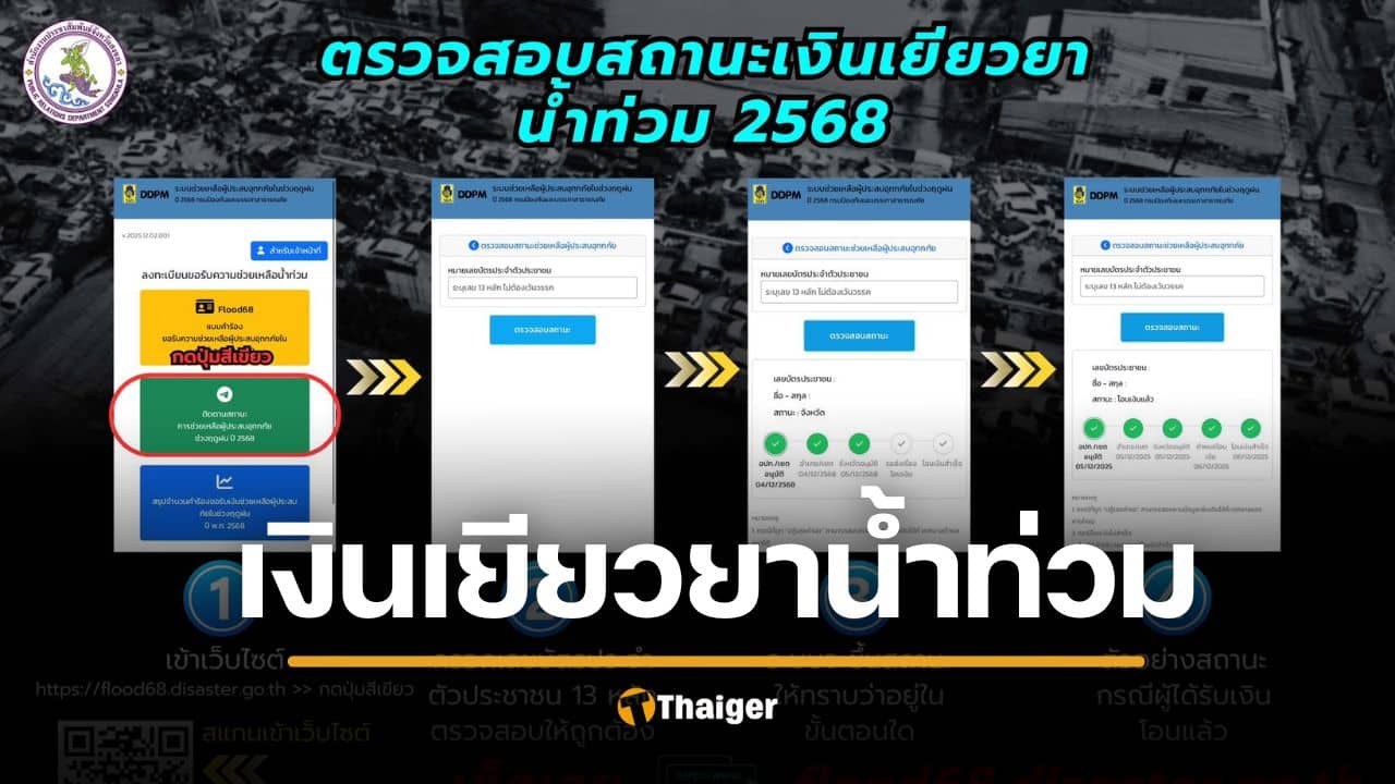 ตรวจสอบสถานะเงินน้ําท่วมปี 68 ผ่านเว็บ flood68.disaster เงิน 9000 เข้าวันไหน