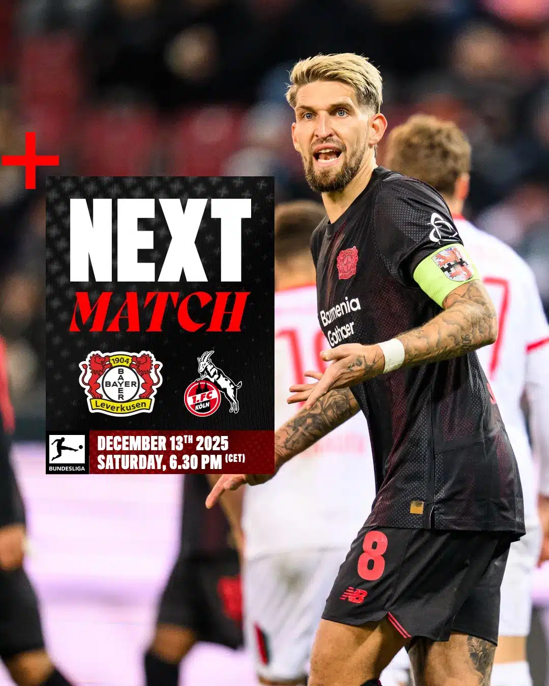 13 ธันวาคม 2568 เวลา 00.30 น. ถ่ายทอดสด ดูบอลสด ฟุตบอล บุนเดสลีกา ฤดูกาล 2025/26 ที่สนาม ไบ อารีน่า เลเวอร์คูเซ่น พบ โคโลญจน์ The Thaiger พาไปวิเคราะห์เกม พร้อมการทำนายผล และคาดการณ์ 11 ตัวจริงได้ที่นี่