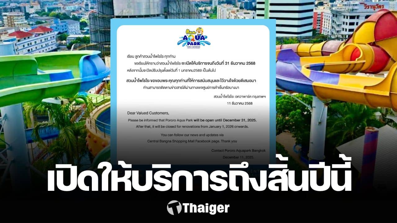 “สวนน้ำโพโรโระจะเปิดให้บริการจนถึง วันที่ 31 ธันวาคม 2568 หลังจากนั้นจะปิดปรับปรุงตั้งแต่ วันที่ 1 มกราคม 2569 เป็นต้นไป”
