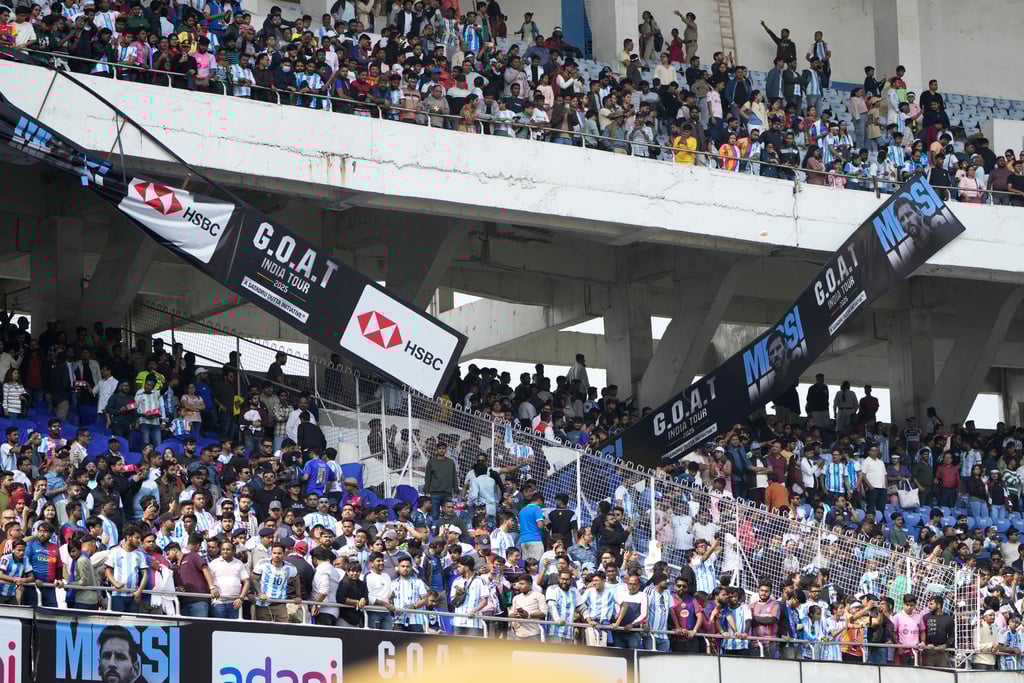 สื่ออินเดียรายงานว่า นักเตะผู้คว้าแชมป์ฟุตบอลโลก 2022 ได้เดินรอบสนามเพื่อโบกมือทักทายแฟน ๆ กว่า 1,000 ชีวิต แต่กลับถูกกลุ่มคนจำนวนมากรุมล้อมอย่างใกล้ชิดและได้เดินทางออกจากงานไปใน 20 นาที หลังจากการมาถึง