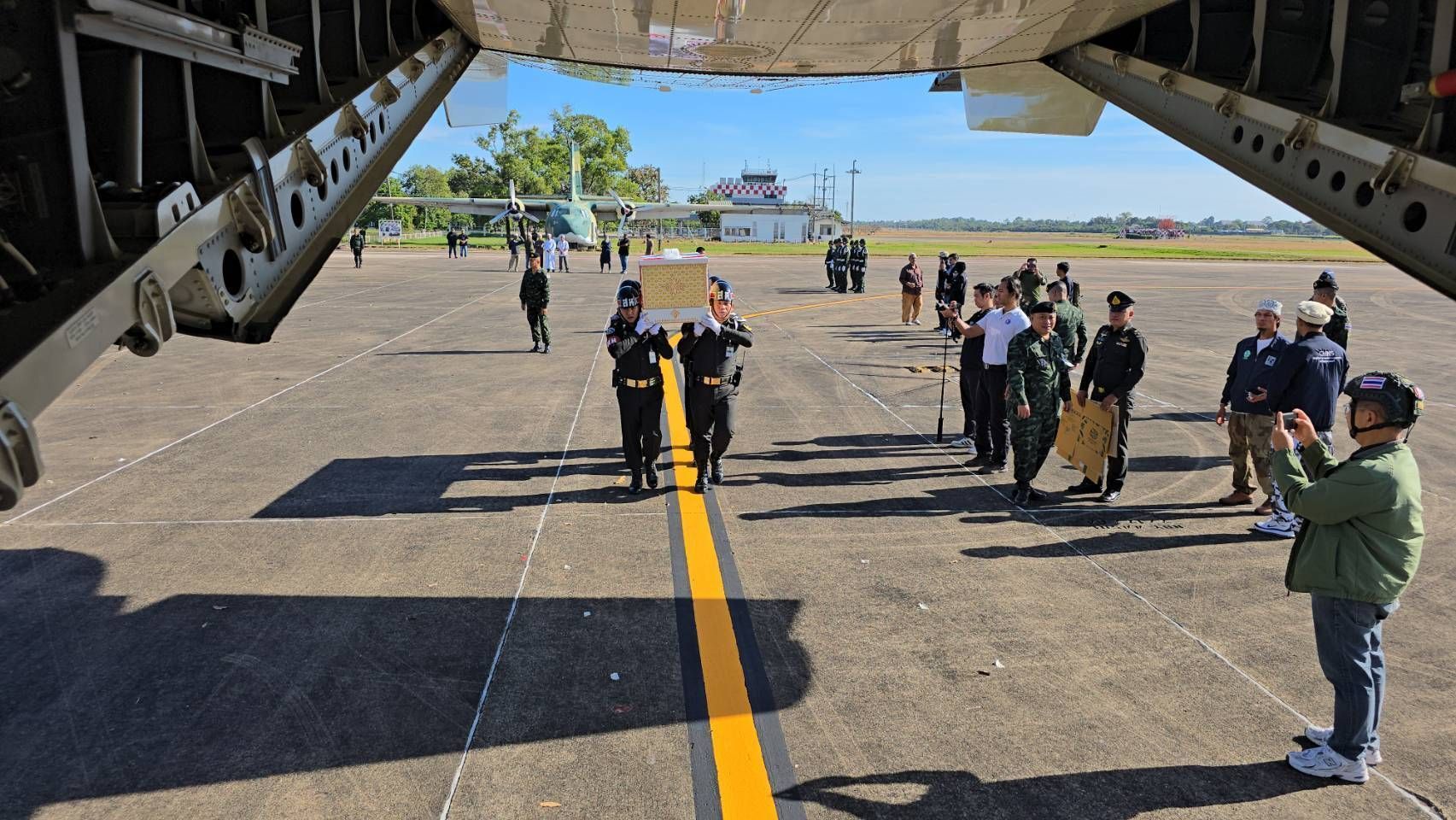วันที่ 14 ธ.ค.2568 เมื่อเวลา 09.00 น. ที่ผ่านมา ณ มณฑลทหารบกที่ 22 ได้มีการประกอบพิธีส่งศพทหารกล้า จำนวน 4 นาย ผู้สละชีวิตในการปฏิบัติหน้าที่เพื่อปกป้องอธิปไตยของชาติ จากเหตุการณ์ปะทะตามแนวชายแดนไทย–กัมพูชา บริเวณพื้นที่เนิน 677 ช่องอานม้า กลับสู่ภูมิลำเนาในจังหวัดพระนครศรีอยุธยา, สุพรรณบุรี, กระบี่ และนราธิวาส เพื่อประกอบพิธีทางศาสนาอย่างสมเกียรติ ณ กองบิน 21 จังหวัดอุบลราชธานี