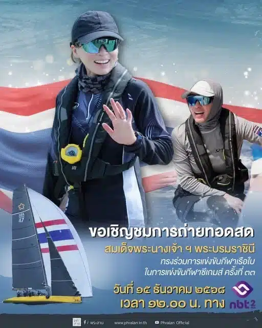 ในโอกาสที่ สมเด็จพระนางเจ้า ฯ พระบรมราชินี ทรงเข้าร่วมการแข่งขันเรือใบ ระหว่างวันที่ 15 – 18 ธันวาคม 2568 ณ โอเชี่ยนมารีน่า ยอร์ช คลับ ตำบลนาจอมเทียน อำเภอสัตหีบ จังหวัดชลบุรี