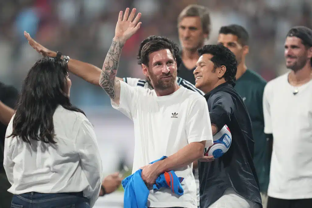 ลิโอเนล เมสซี่ สร้างความตื่นเต้นทั่วอินเดีย ไปพร้อมๆ กับเหตุการณ์ดราม่าไม่เว้นแต่ละวัน ล่าสุดโผล่ที่มุมไบฝูงชนส่งเสียงโห่ใส่ อเจย์ เดฟกัน และ ไทเกอร์ ชรอฟฟ์ ขณะที่การเยือนไฮเดอราบัดกลายเป็นประเด็นโจมตีทางการเมืองอย่างดุเดือด